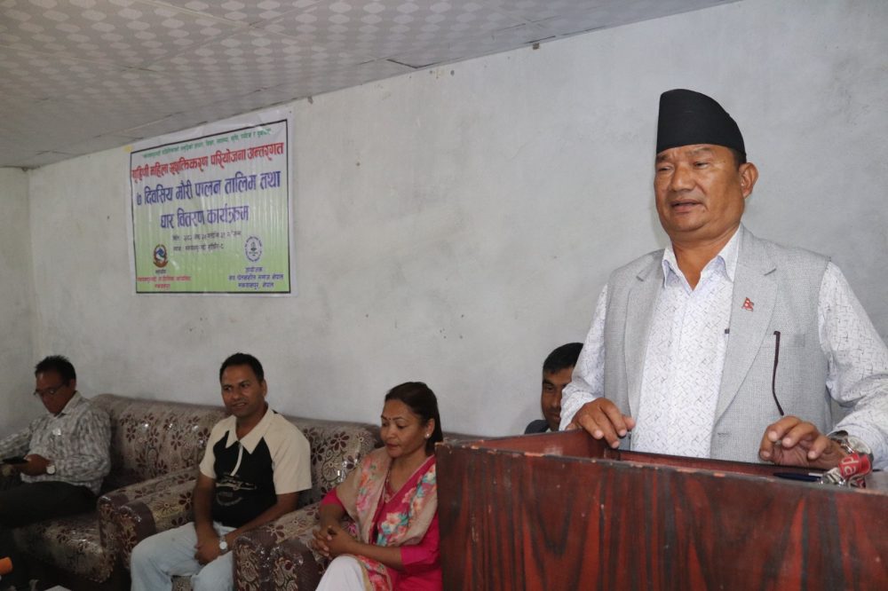 तालिम शुभारम्भमा पालिकाकी उपाध्यक्ष मानकुमारी नेपाली पाख्रीनले आफूहरु विभिन्न सीप मुलक तालिम सञ्चालन गर्दै उद्यमशील तथा स्वरोजगार बनाउने कार्यमा लागिपरेको जानकारी दिइन् । ‘ब्युटिसियन, ब्याग, गलैँचा बुन्नेजस्ता सीपमुलक तालिम सञ्चालन गरी उद्यमशील बनाउन सहयोग गरिरहेका छौँ ।’ उपाध्यक्ष पाख्रीनले भनिन् । उनले आगामी आर्थिक वर्षमा पनि गाउँपालिकाभित्र औपचारिक शिक्षा तथा अवसरबाट पछाडि परेकालाई सहयोग पुग्ने खालका कार्यक्रम ल्याइने जानकारी दिइन् ।